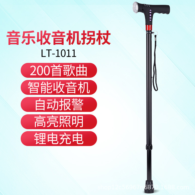 多功能可调节高度老年人拐杖可调节灯源红光警示手动报警锂电充电