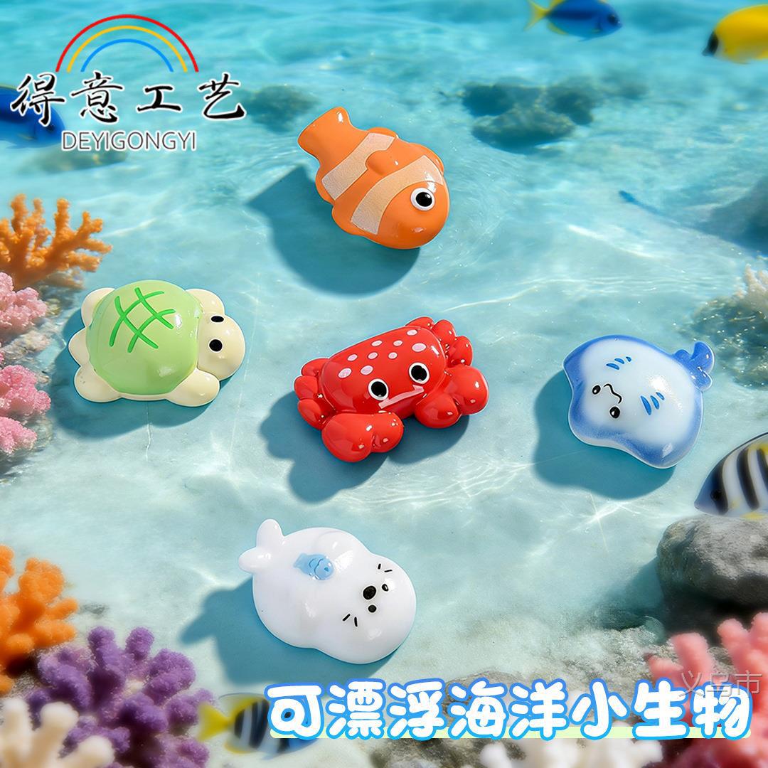 微景观漂浮海洋动物乌龟海豹螃蟹萌粒 鱼缸造景diy装饰配件小摆件