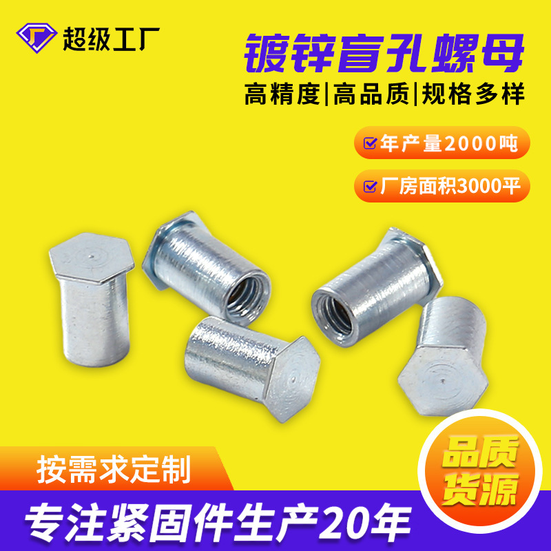 镀锌盲孔压铆螺柱M3M4M5镀锌压铆件六角螺柱BSO压铆螺柱压板螺母