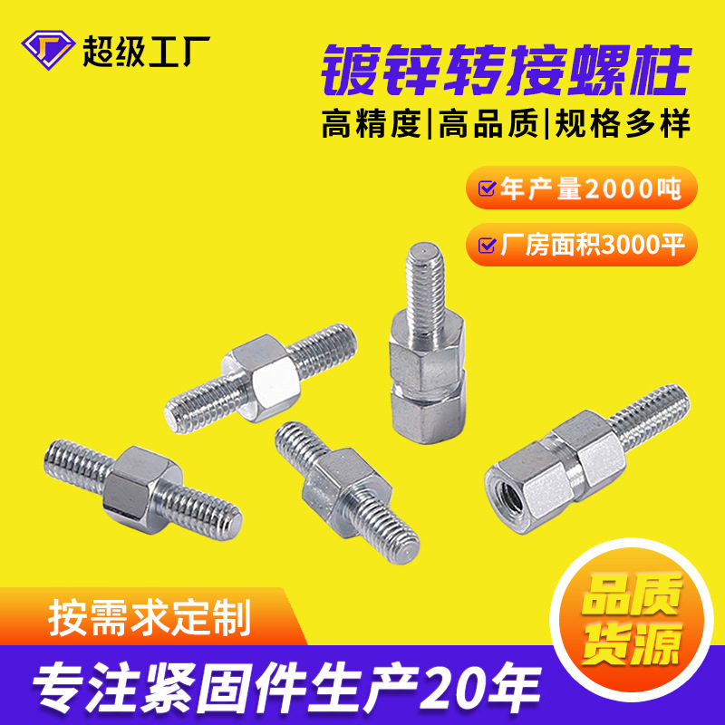 1215镀锌转接螺柱双头六角螺柱外螺纹螺丝连接柱主板支撑柱隔离柱