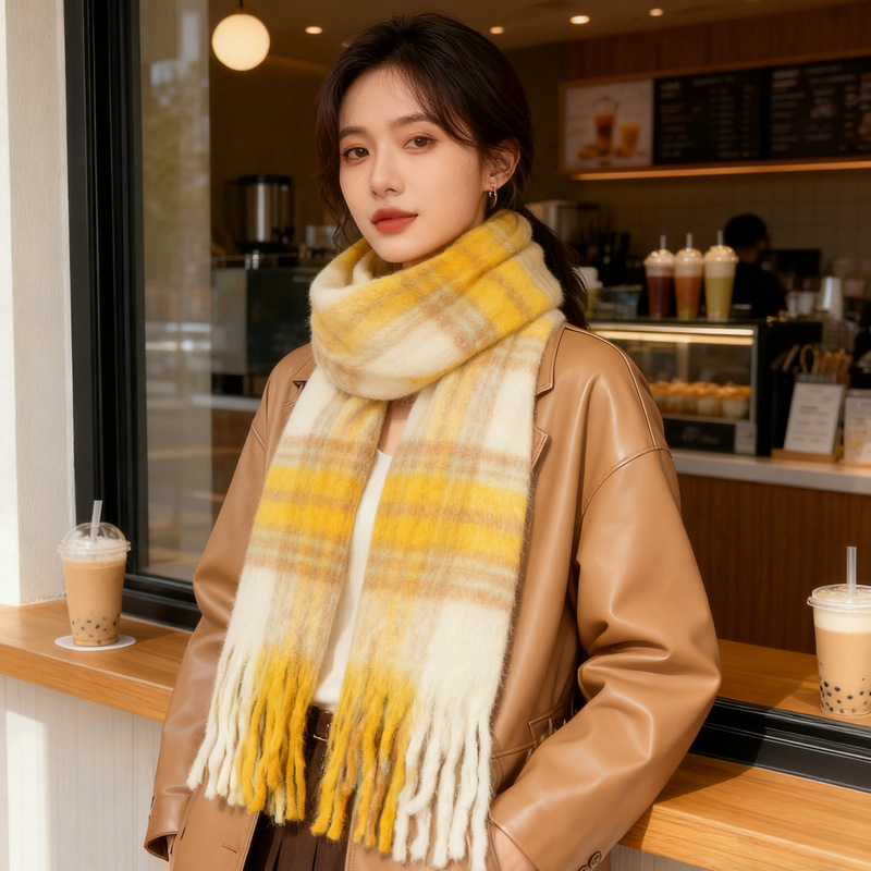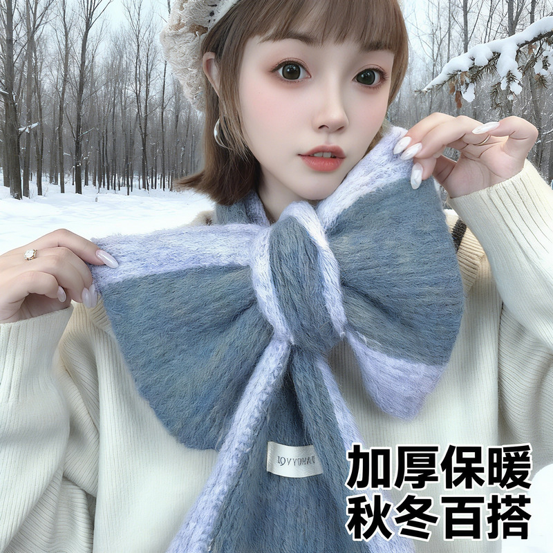 新款小美拉德加厚保暖围巾冬季女马海毛仿羊绒围脖加长软糯出厂价