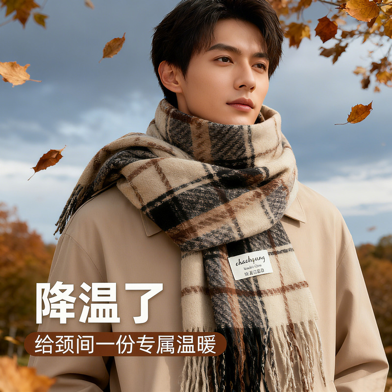 韩系秋冬围巾氛围感圣诞红绿格子仿羊绒围巾四色男女情侣款百搭新