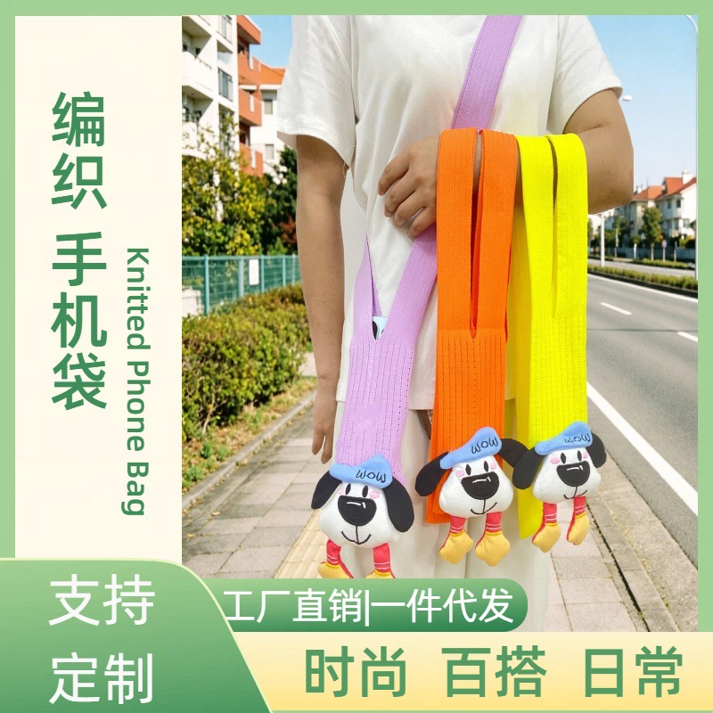 针织卡通狗狗斜挎手机小包简约潮流便携小巧时尚百搭日常出游专用