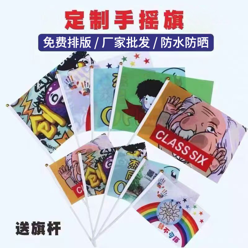 手摇旗明星队旗小学运动会定 制班旗手拿小旗子导游旗广告印字