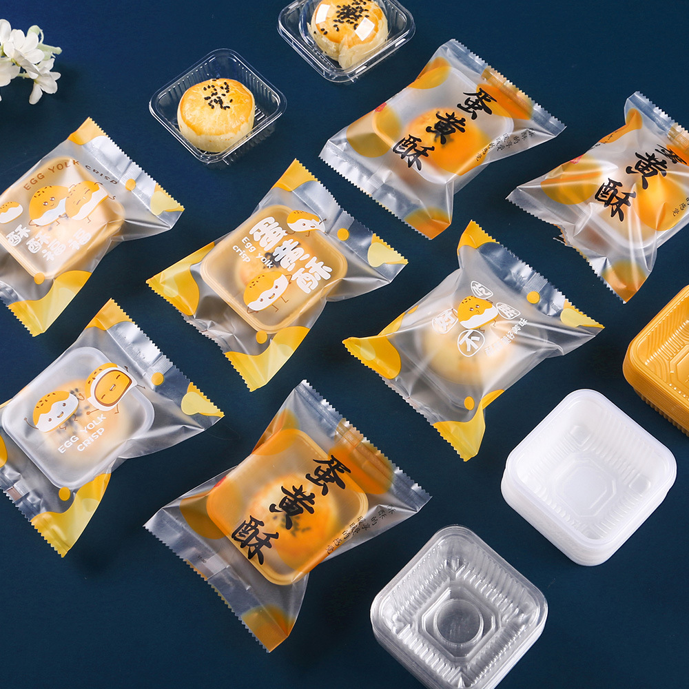 新款蛋黄酥包装袋60-80克机封袋透明带托烘焙雪媚娘蛋黄酥包装盒