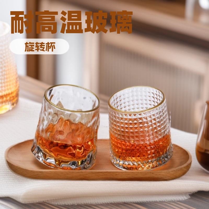 威士忌解压杯旋转玻璃杯转转酒吧批发陀螺洋酒水杯陀螺杯