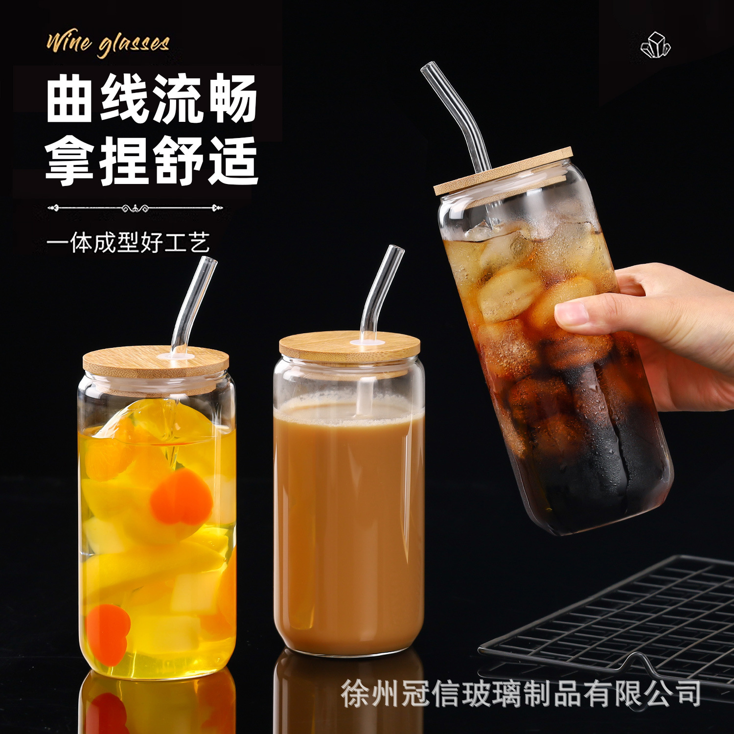 简约亚马逊透明高硼硅玻璃梅森杯高颜值水杯耐高温带盖吸管可乐杯