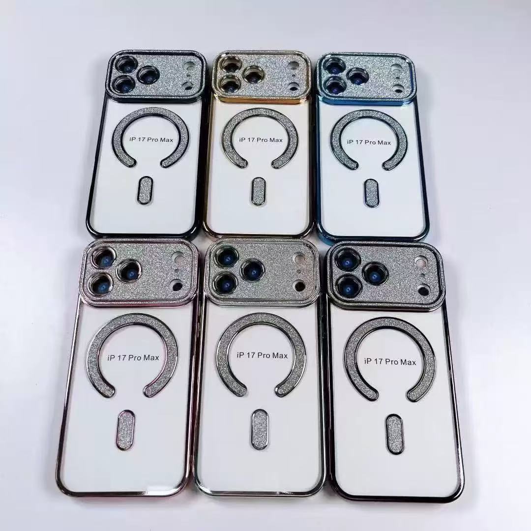 新款简约磁吸适用iphone17手机壳苹果16promax/15电镀14pro13闪钻