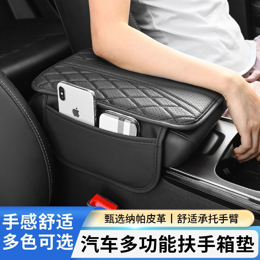 跨境汽车扶手箱垫车载中央手肘薄款透气增高垫带侧袋扶手保护套垫