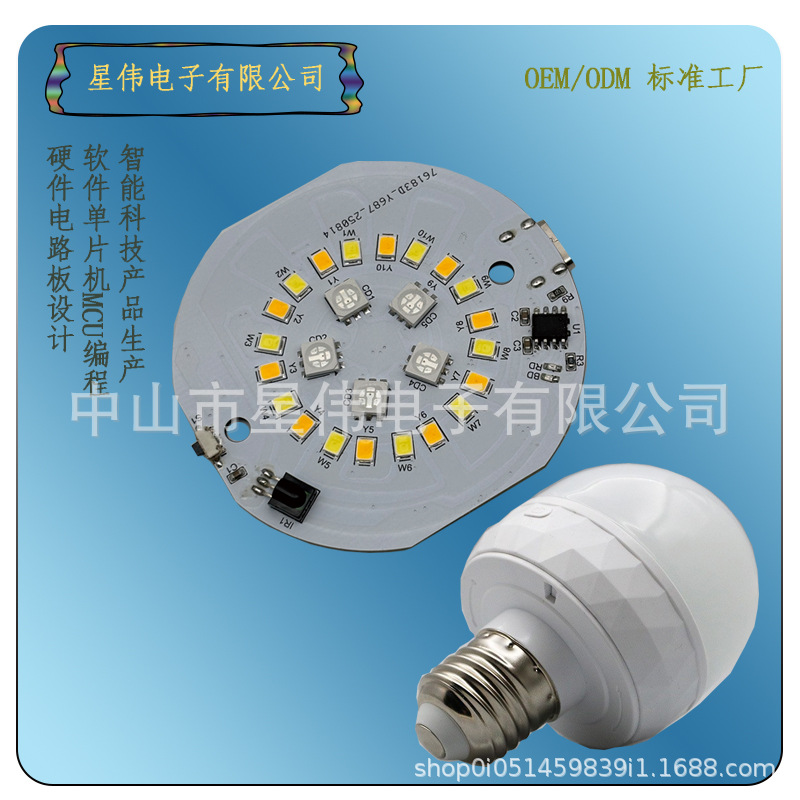 LED台灯壁灯RGBCW遥控充电单按键7彩变幻E27球泡台灯pcba电路板