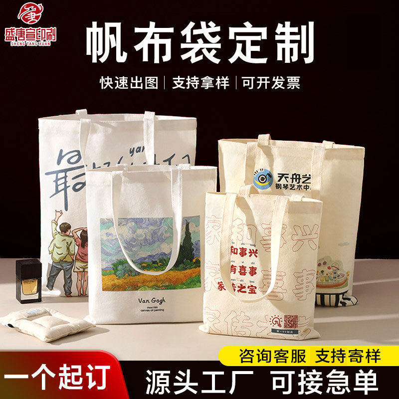 帆布袋定 制logo手提袋棉布袋大容量单肩背包定 做diy空白购物袋
