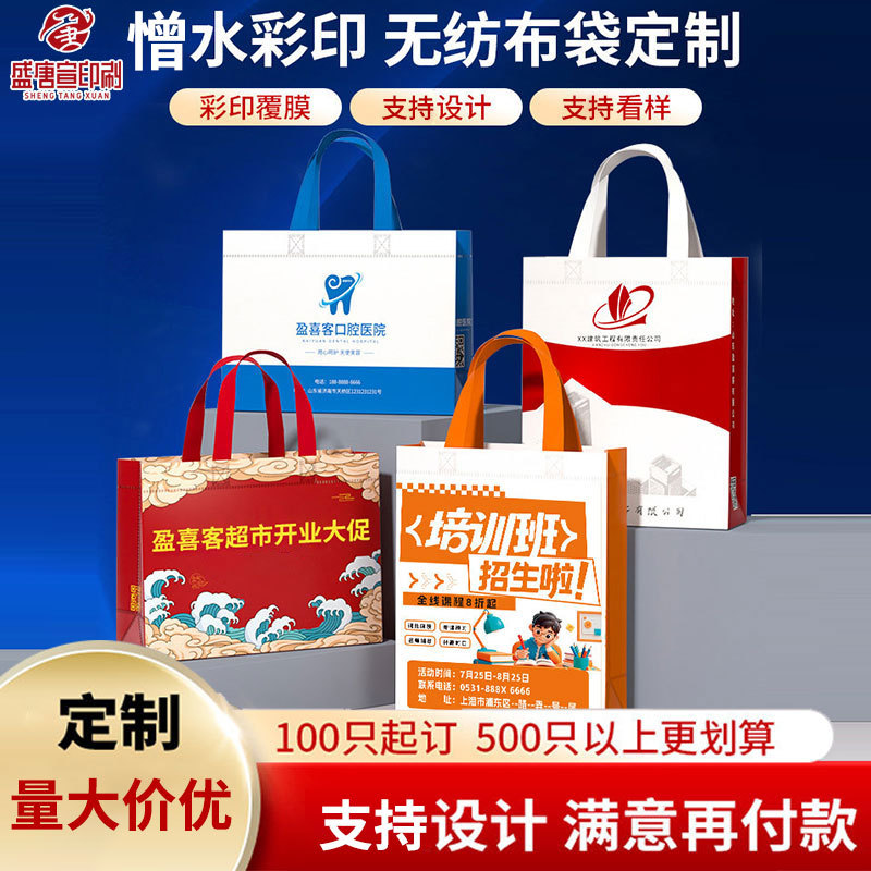 无纺布袋手提袋定 制覆膜彩印购物袋培训班企业宣传定 做广告袋子