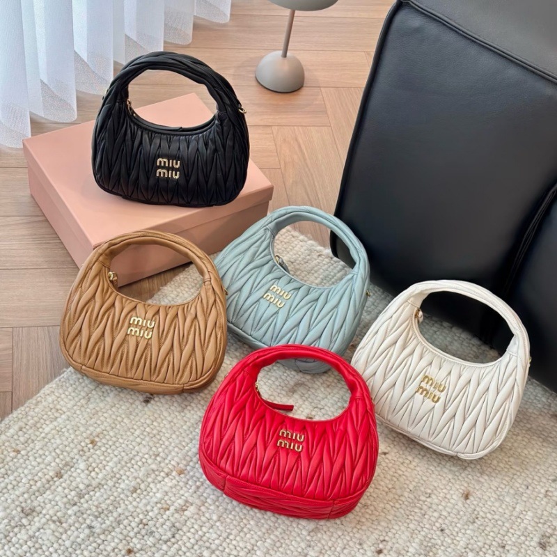 miu缪家褶皱小羊皮饺子包 hobo腋下包褶皱潮流手提包斜挎包女包包