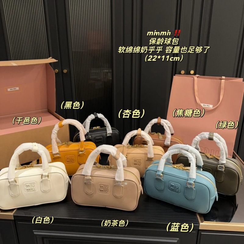 miu缪家新款小羊皮保龄球手提时尚相机小方包单肩斜挎波士顿女包