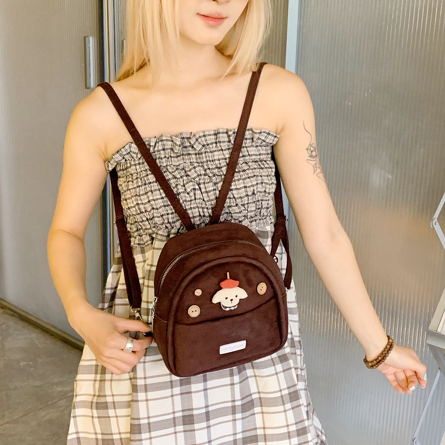 可爱公仔双肩包女2025新款时尚少女风迷你书包秋冬复古磨砂后背包