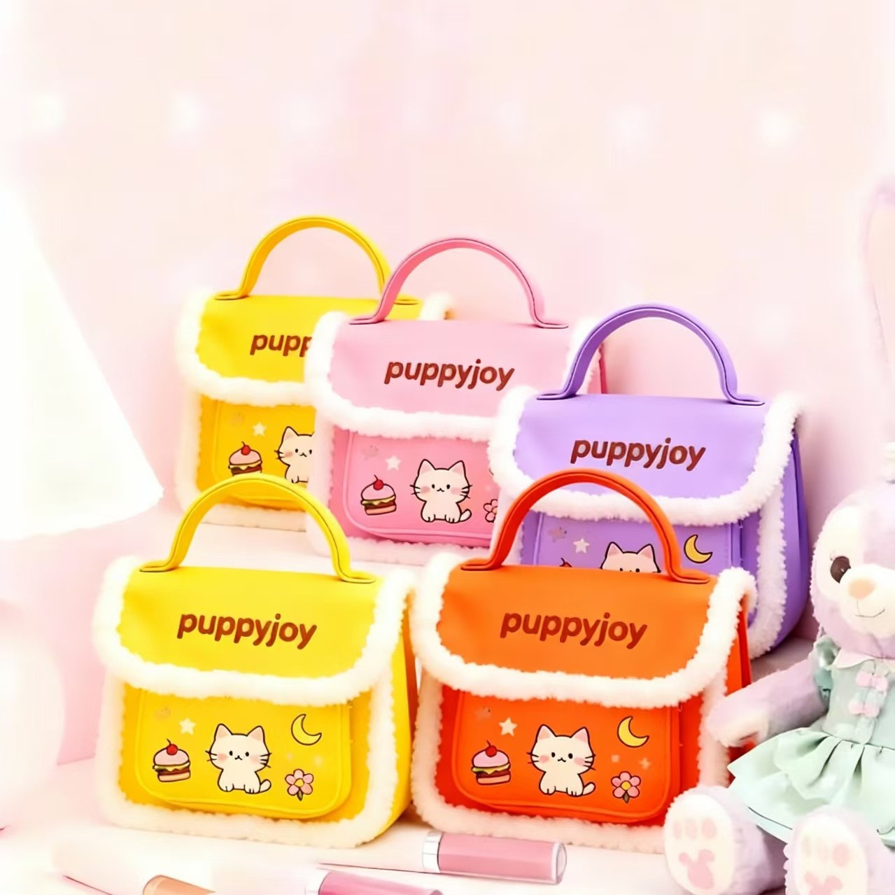 可爱毛绒小猫手提包分区大容量手提化妆包萌趣卡通化妆包源头工厂