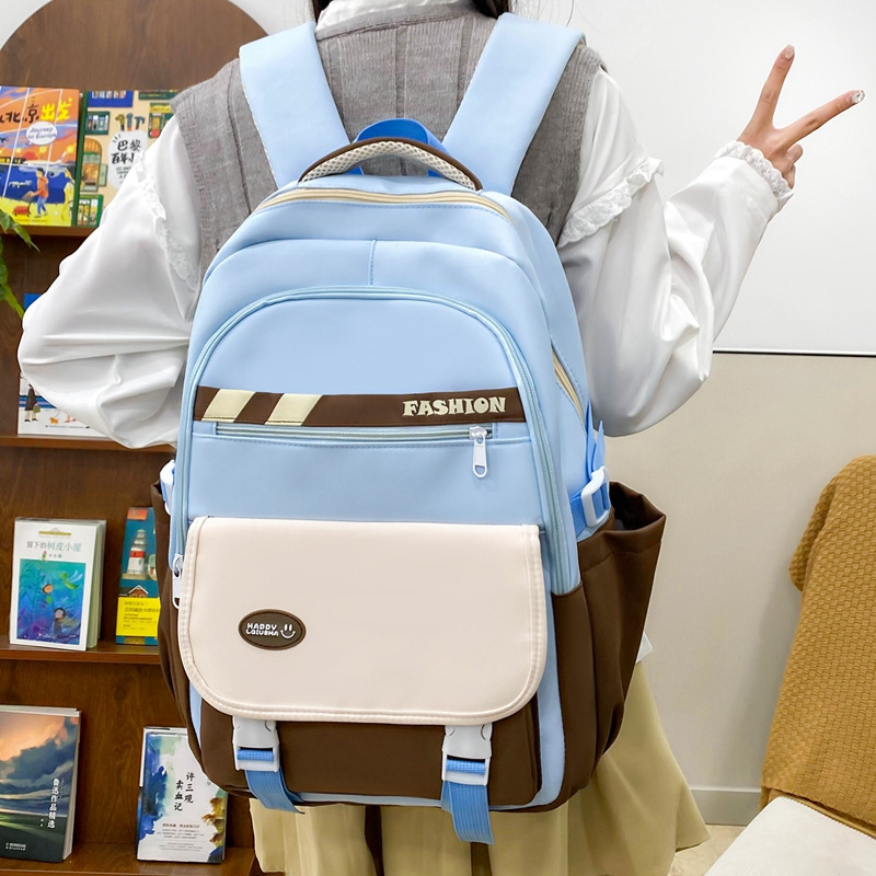 2025新款简约百搭休闲包撞色初高中学生书包大容量校园双肩包