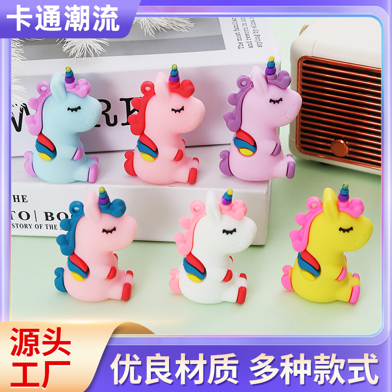 独角兽七彩小马卡通公仔橡胶钥匙扣公仔钥匙扣情侣包包挂件批发
