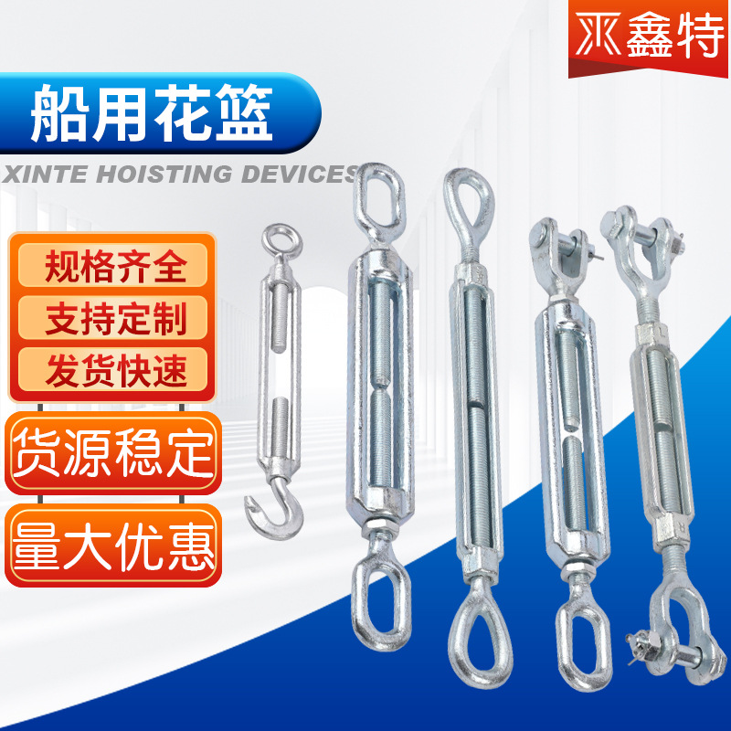 船用花篮UU型OU开体花篮螺丝镀彩锌链条螺旋扣钢丝绳拉紧器