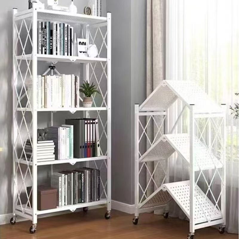 大折叠置物架落地带轮子客厅可移动整理架子免安装多层厨房收纳架