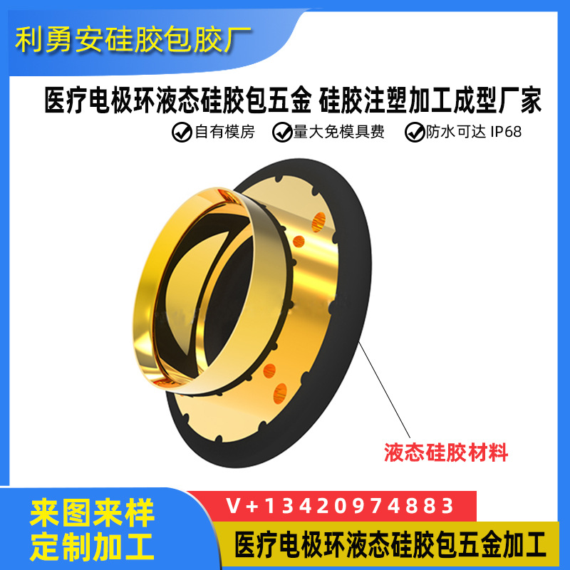 医疗电极环液态硅胶包五金 硅胶注塑加工成型厂家硅胶开模包胶