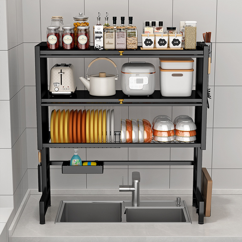 沥水篮置物架黑色水池收纳架批发碳钢双层家用储物砧板刀具收纳架