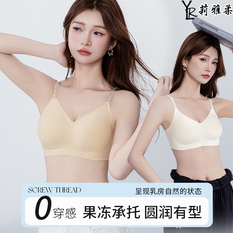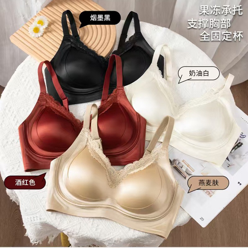 高品质款缎面果冻胶承托蕾丝内衣薄款雅致美背性感大胸显小防下垂
