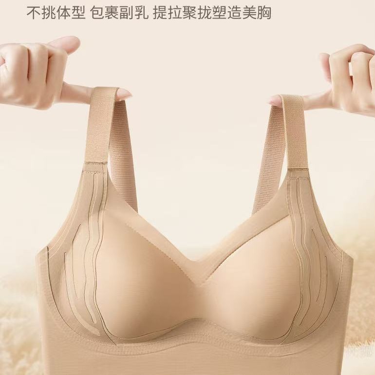 跨境外贸爆款简约软支撑聚拢透气粉底液文胸反重力提拉美背小胸内