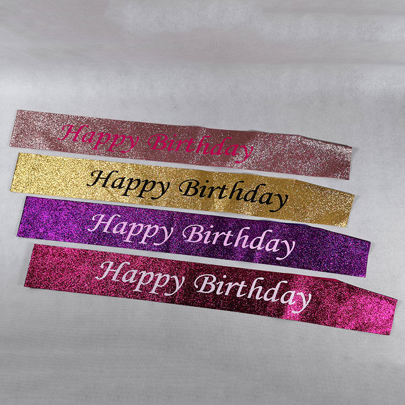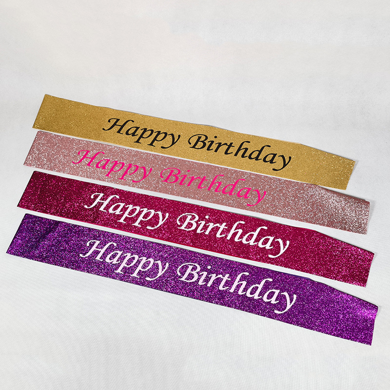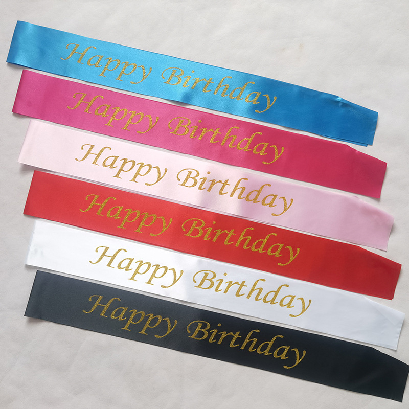 生日派对happy birthday装饰葱粉布印刷肩带跨境生日宴会礼仪带