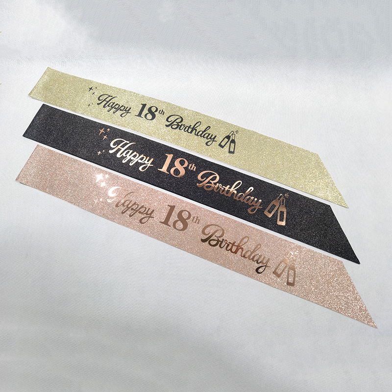 厂家直供葱粉布烫金肩带印字happy 18 birthday生日派对礼仪带
