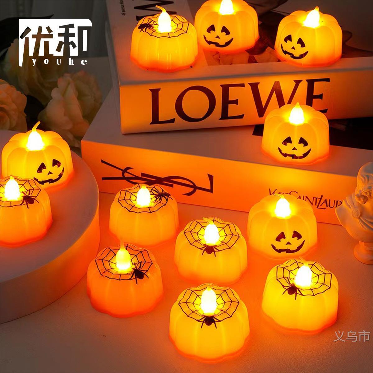 跨境万圣节南瓜蜡烛灯led电子蜡烛灯气氛摆件灯发光玩具派对装饰