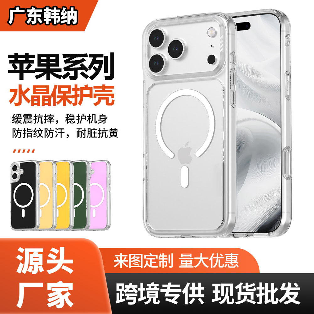 适用苹果17Pro手机壳水晶保护壳纯色简约防摔magsafe磁吸手机壳