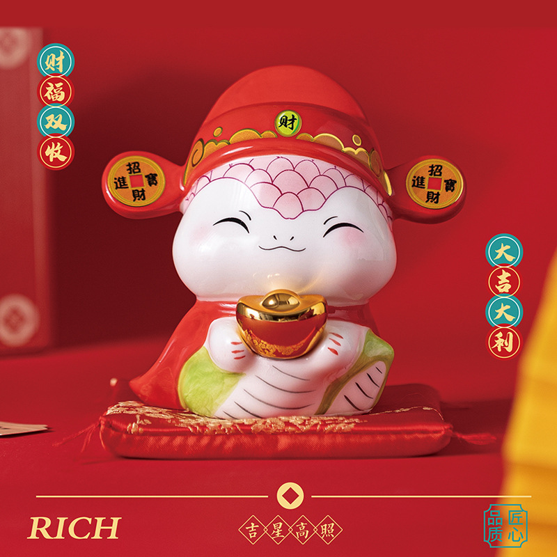 新中式蛇年摆件创意陶瓷存钱罐摆件存钱罐收银台店铺福袋装饰礼品
