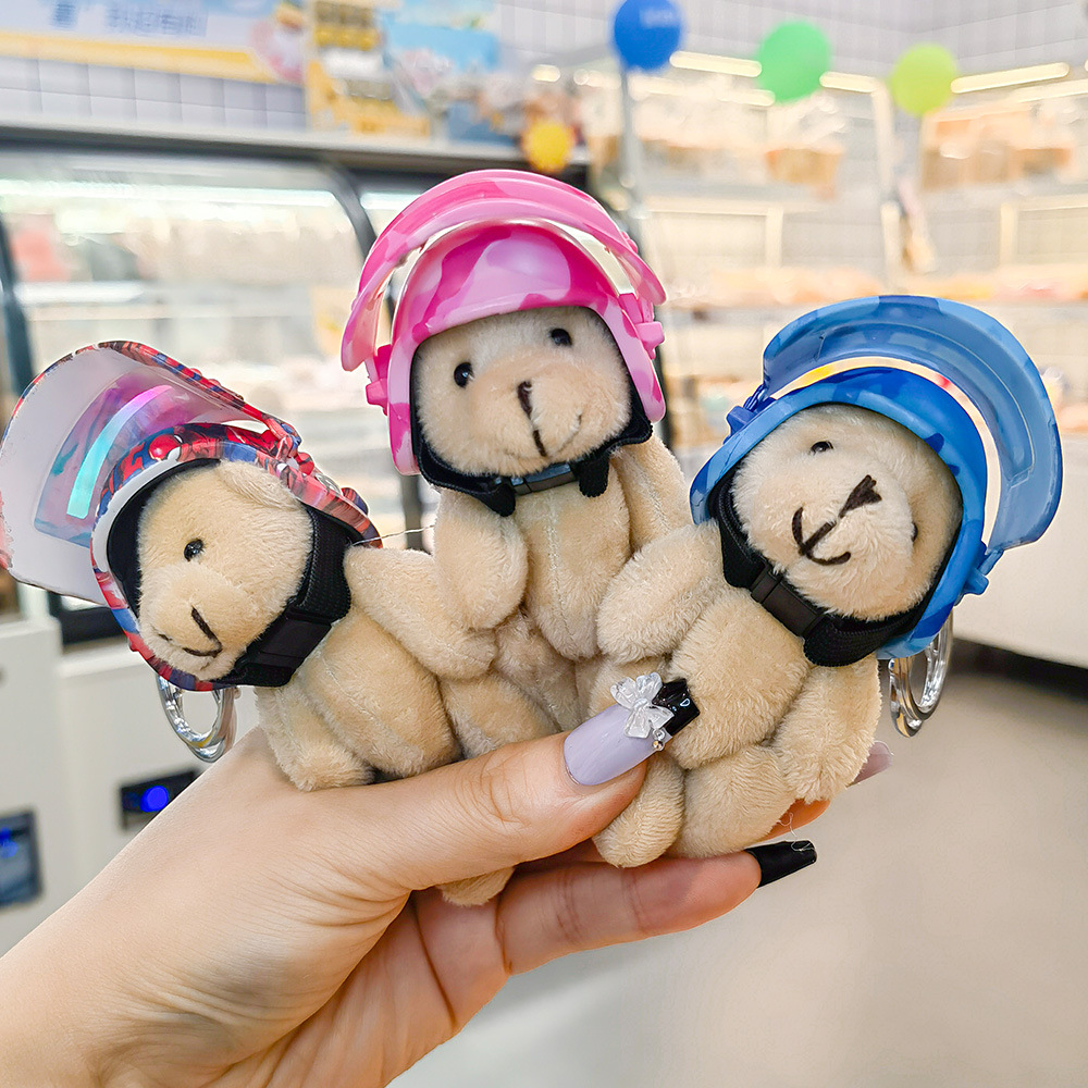 韩国ins机车头盔小熊钥匙扣包包挂件可爱毛绒公仔玩偶配饰礼品