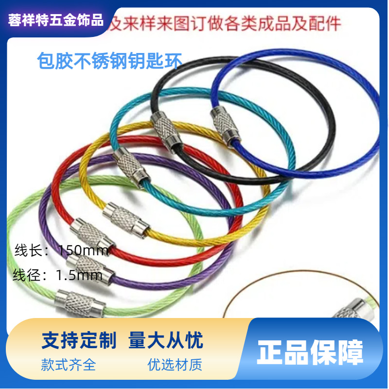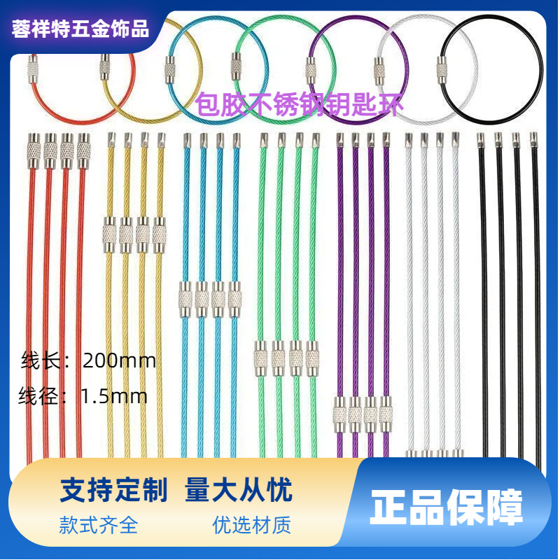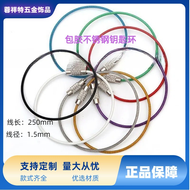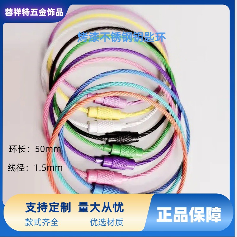 38色源头厂家烤漆钢丝圈喷漆包胶钢丝绳DIY钥匙扣车钥匙炫彩手工