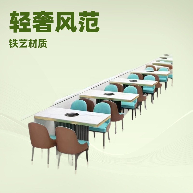 商用电磁炉岩板烤涮一体桌火锅店火锅桌椅卡座岩板餐桌火锅桌椅