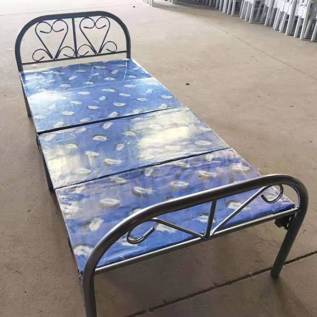 跨境单人可折叠铁架床厂家批发员工学生宿舍铁床工地钢架铁艺床