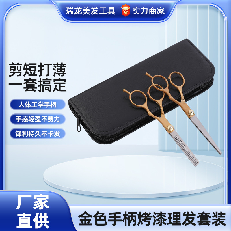 分体剪金色烤漆美发剪刀家用剪刀 理发剪刀平剪牙剪美发剪刀套装