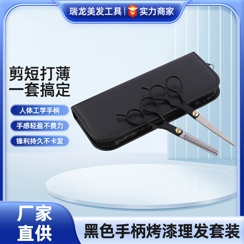分体剪黑色烤漆小螺丝美发剪刀理发剪刀 平剪牙剪美发剪刀套装