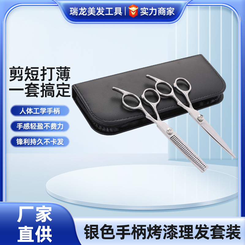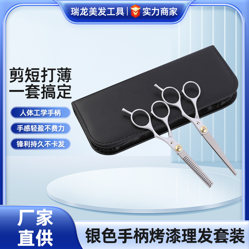 家用理发剪刀斜尾巴分体6寸剪刀银色烤漆打薄美发理发剪刀套装