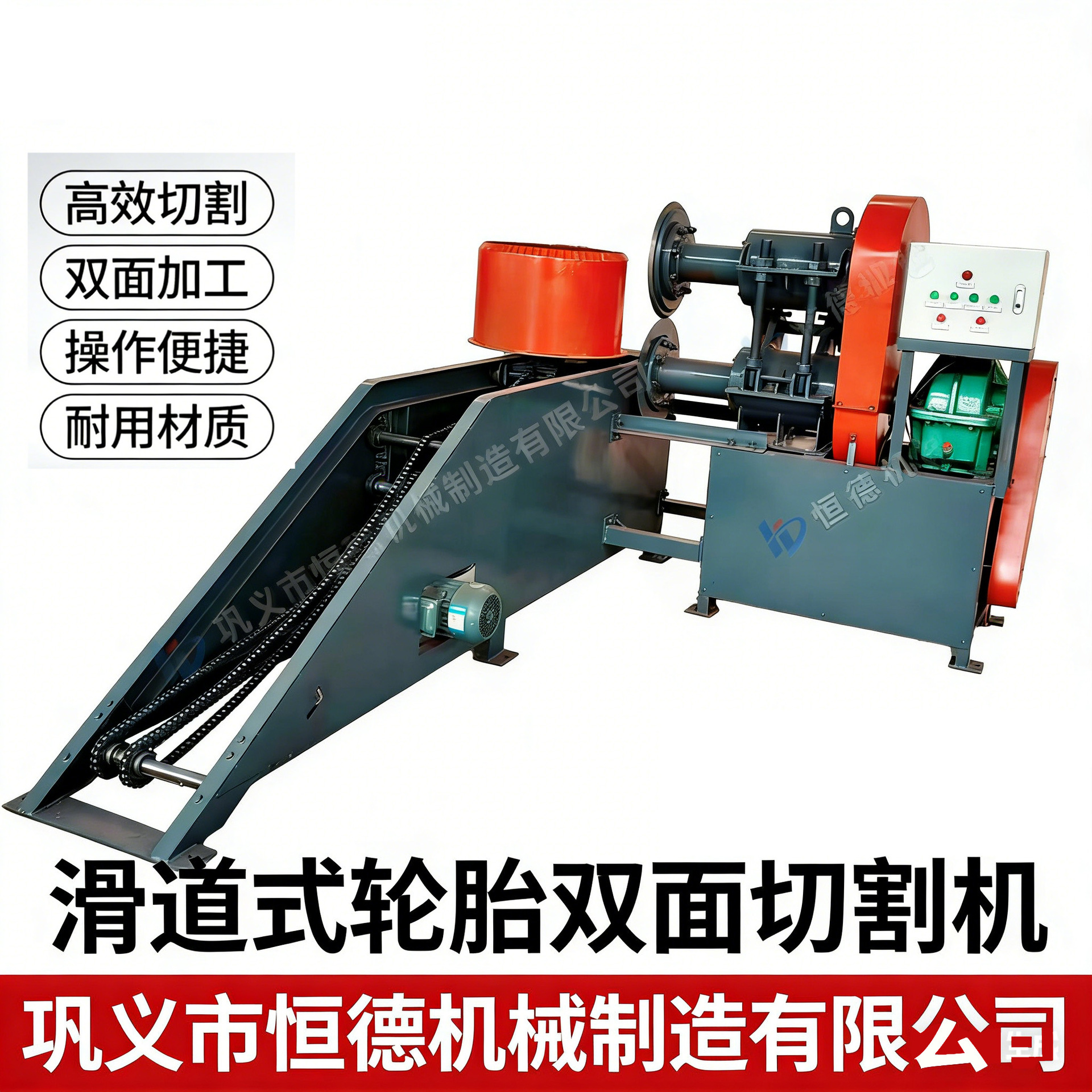 河南恒德滑道式轮胎双面切割机 自动进料 切口平整 省时省力