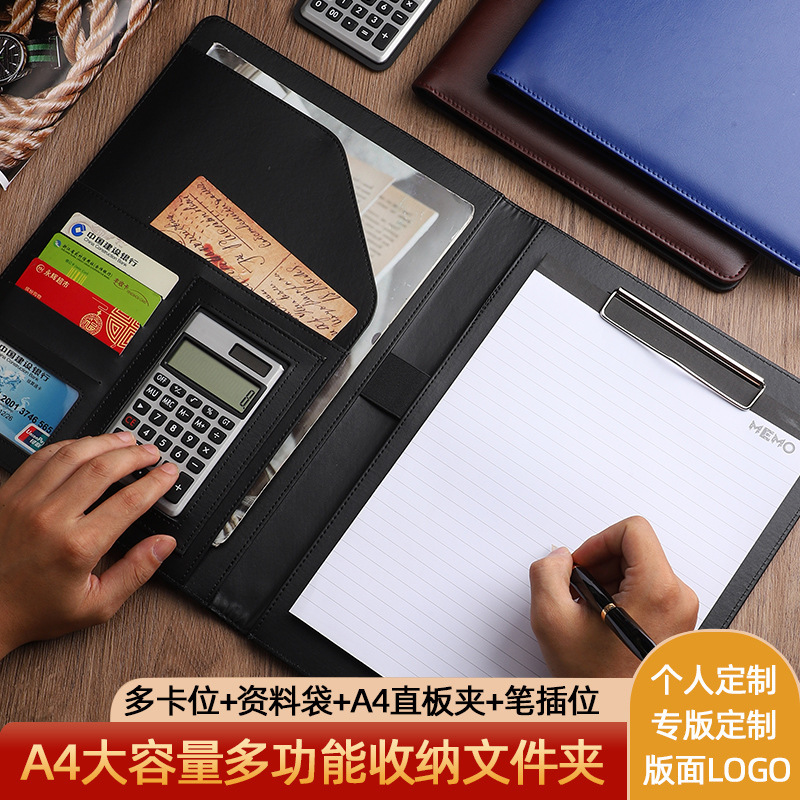 A4多功能文件夹带计算器商务办公谈单夹皮革经理夹量房本可加logo
