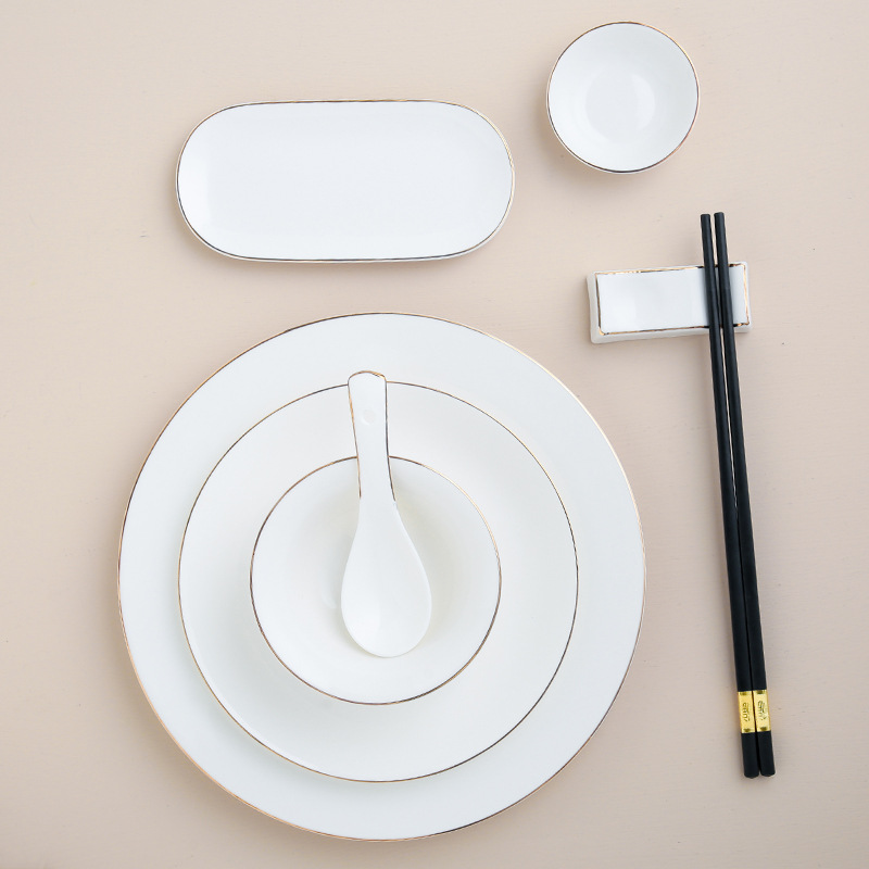 酒店餐厅高档新骨瓷金边摆台餐具汤碗陶瓷盘翅碗骨碟套装三四件套