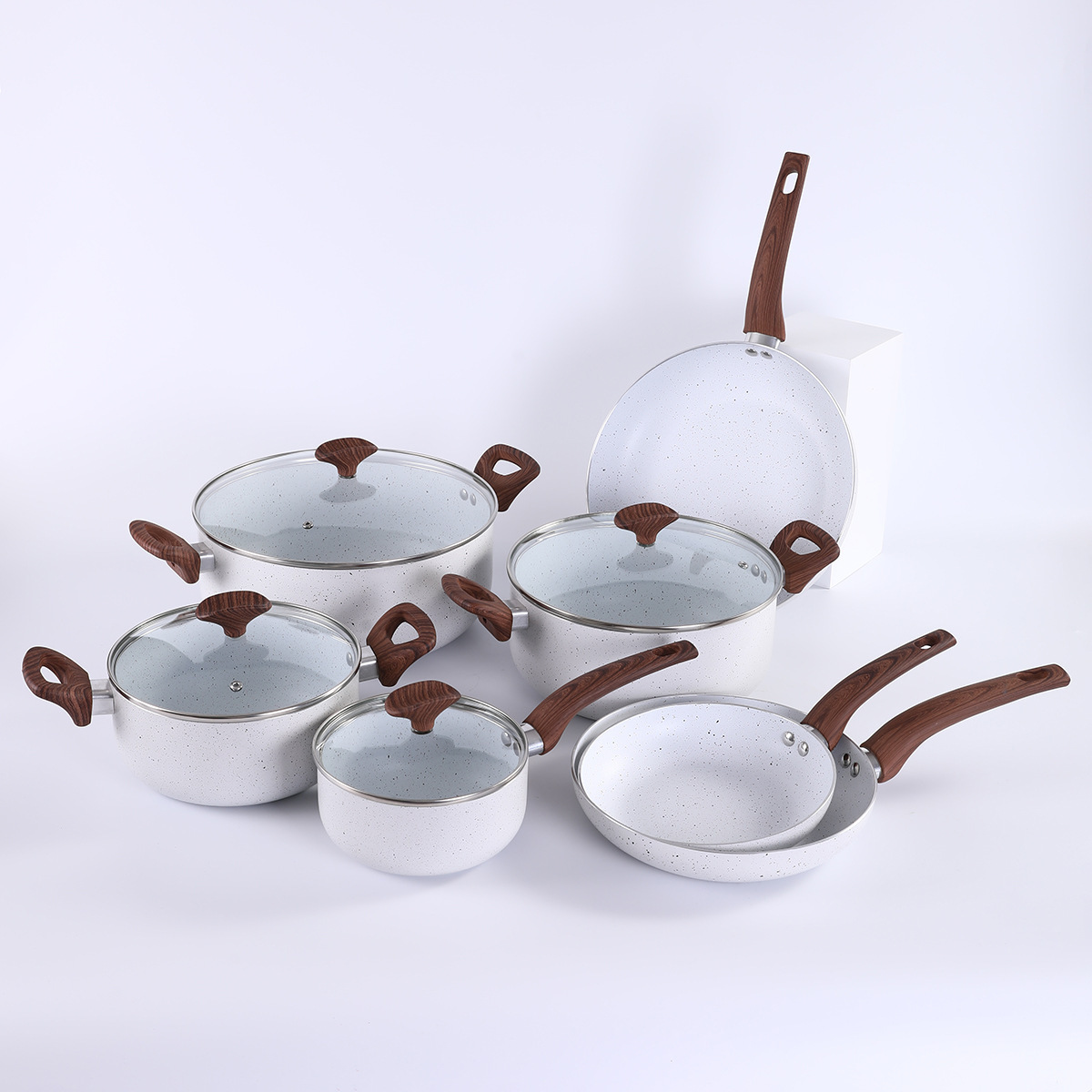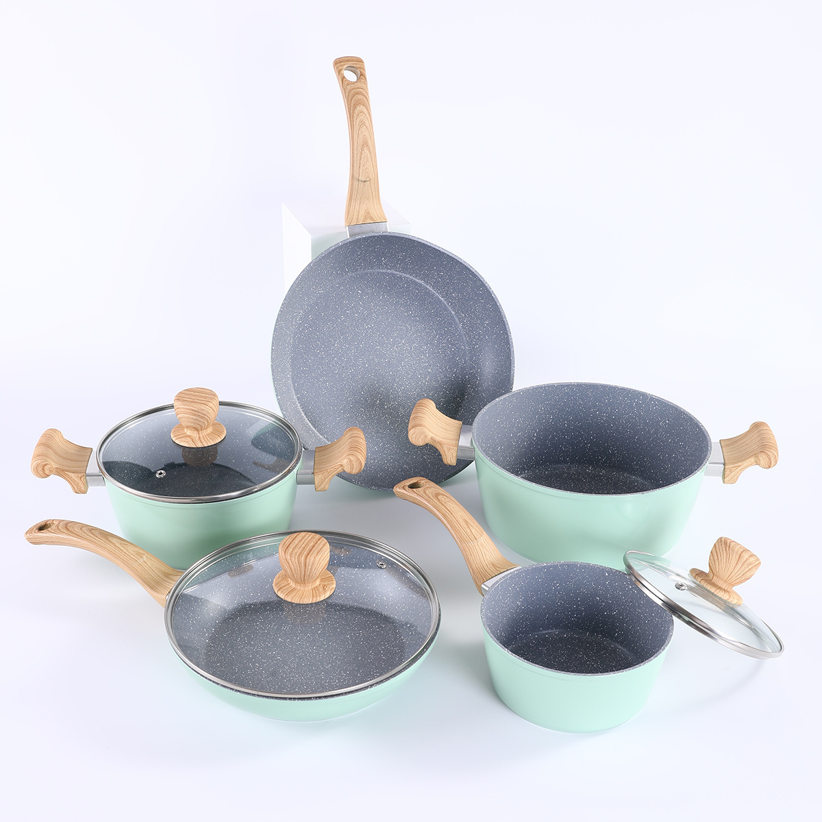 跨境热销高颜值麦饭石不粘锅家用煎锅炒锅奶锅套装厨房炒菜锅具