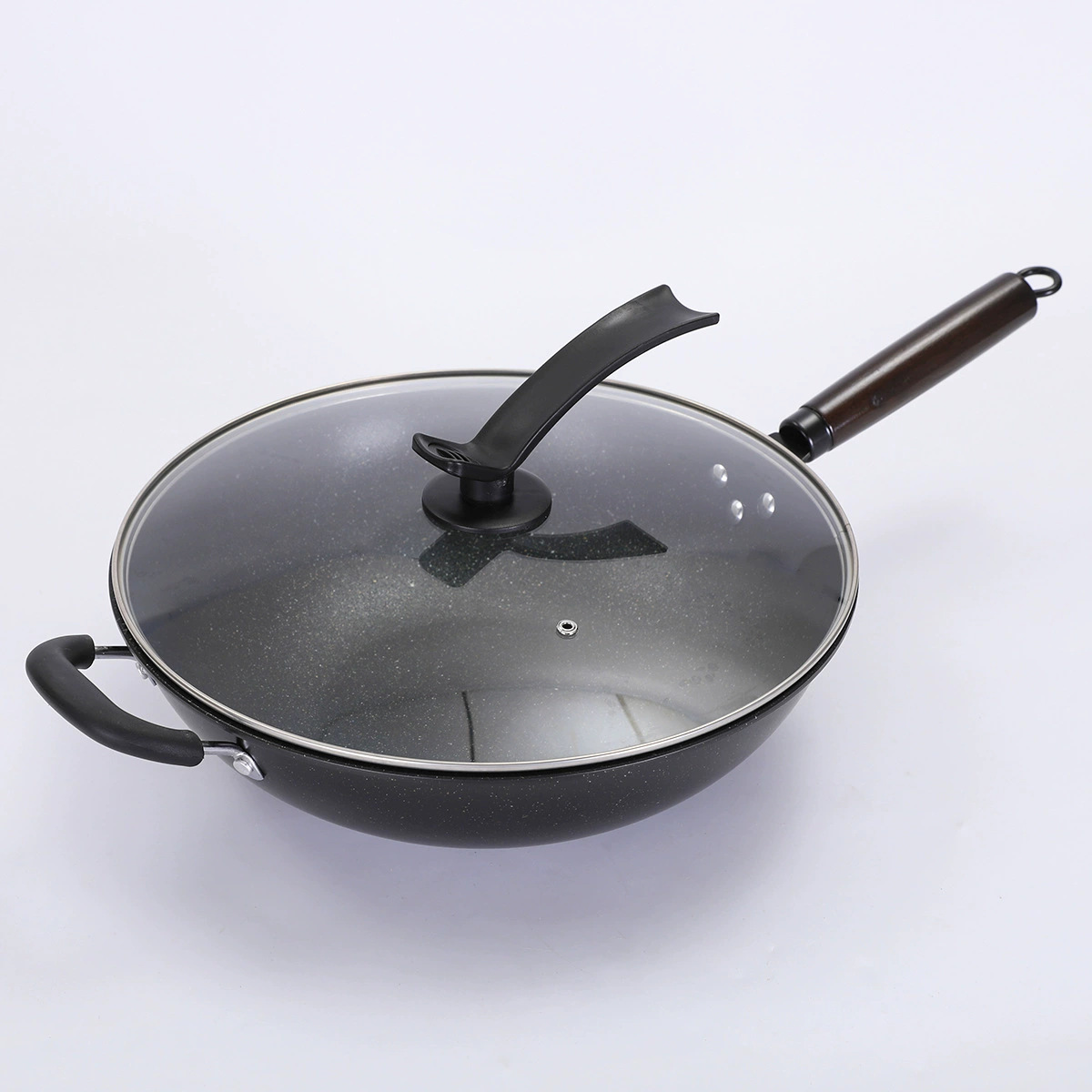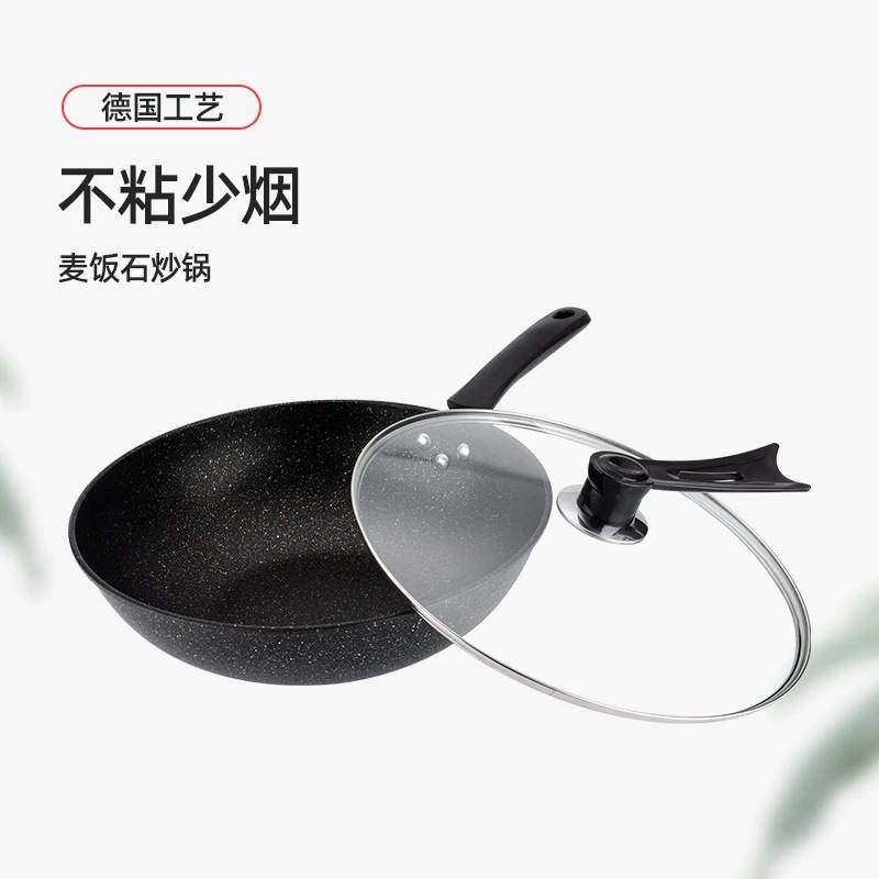 祥锐 厂家直销麦饭石炒锅不粘锅家用多功能平底炒菜锅电磁炉煤气
