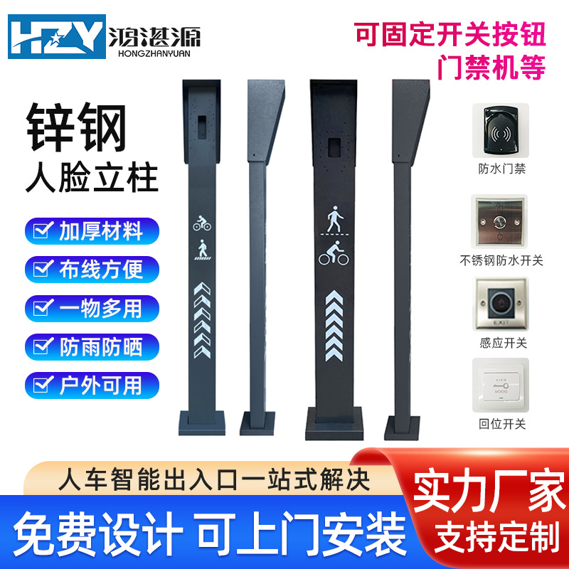 室外门禁系统人脸识别立柱小区通道进出门刷卡柱子开关按钮读卡器