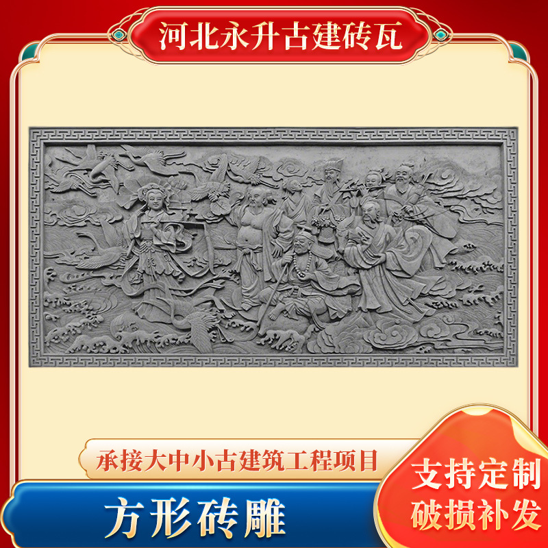 仿古砖雕浮雕古建影壁墙一帆风顺长方形砖雕园林广场文化墙浮雕