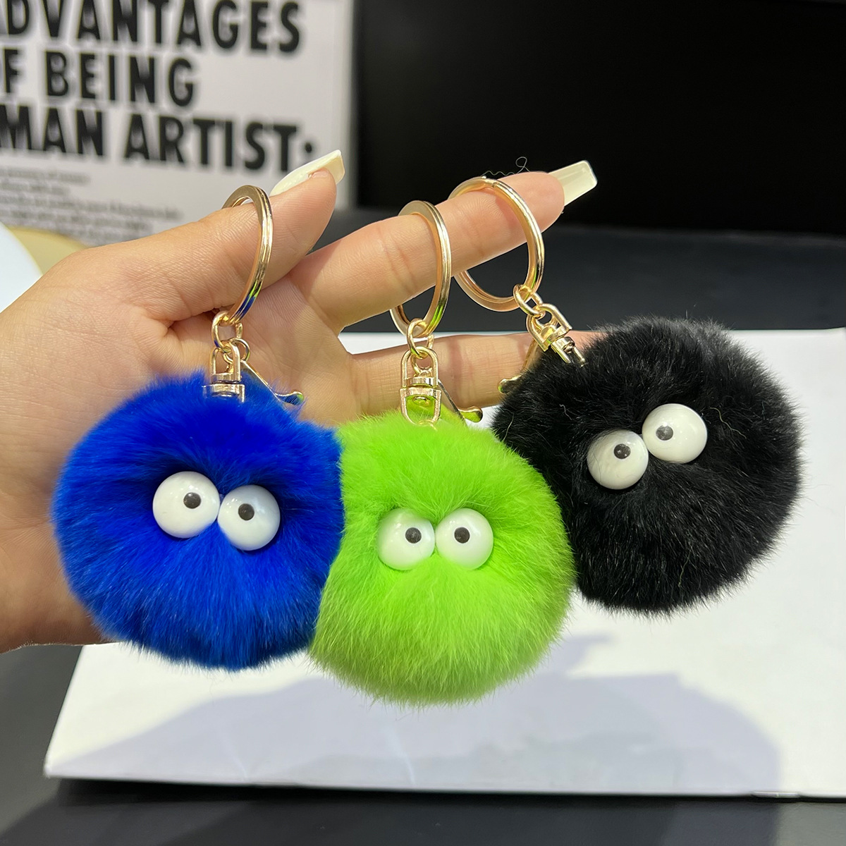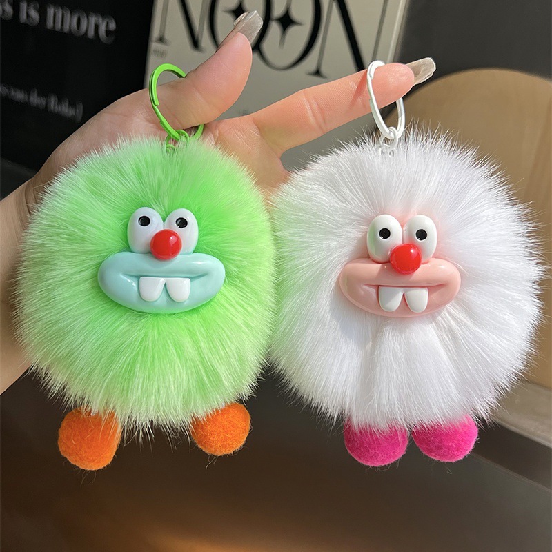 定制可爱仿獭兔毛小煤球车钥匙扣挂件ins毛绒毛球书包包挂饰礼物