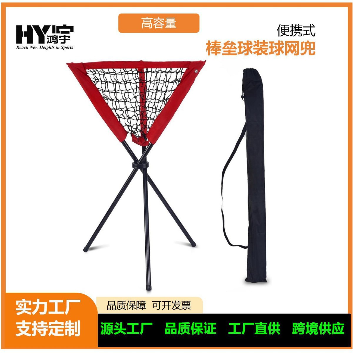 厂家热销三角集球架棒垒球装球网兜棒球集球器室内外便携式集球网