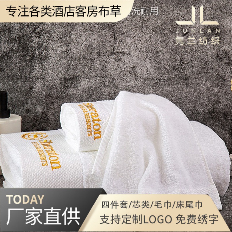 酒店纯色白色地巾全棉防滑毛巾布草洗浴中心加厚家用民宿吸水巾